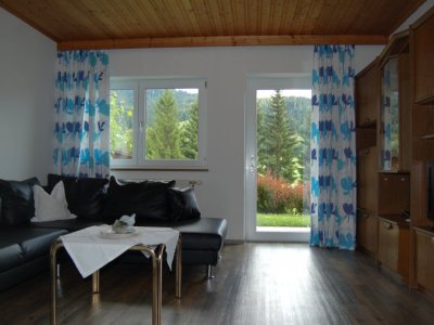 Alle 3 Ferienwohnungen unterschiedlicher Größe haben Balkon bzw. Terrasse mit Blick auf den Garten (mit Tischtennis, Trampolin, viele Spiele) und auf unseren Hausberg, die Buchensteinwand mit neuer Attraktion, dem begehbaren fast 30m hohen JAKOBSKREUZ!