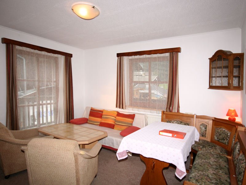 Wohnzimmer: mit Schlafcouch, Radio und CD-Player, SAT-TV