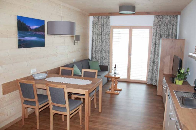 • Wohnraum mir ausziehbarer Couch, Flat- TV und Zugang zur Terrasse