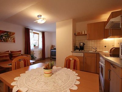 komplett ausgestattete, gemütliche Wohnküche mit Mikrowelle und Esstisch