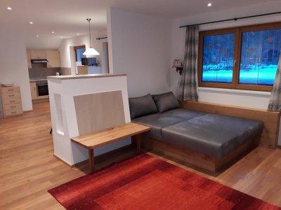 Komfort und Behaglichkeit auf zwei Ebenen: Eigener Eingang, OG: 2 Schlafräume mit DU/WC, SAT-TV; Infrarotkabine für 2 Personen; Tages-WC. DG: Kochen, Essen, Wohnen (Kühlschrank m. Eisfach, Geschirrspüler + Tabs, Mikrowelle, Kaffeemaschine, Wasserkocher, Toaster, Eierkocher, Herd mit Backrohr, komplettes Ess- und Koch-Geschirr), Kachelofen, SAT-TV, Radio, WLAN, Zugang zu Schiraum und Schuhtrockner. 110m2 + 30m2 SO Terrasse.